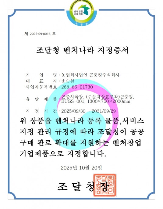 곤충킹 고단백 영양미가 '2025 창업기업제품 디렉토리북'에 수록됐습니다!
